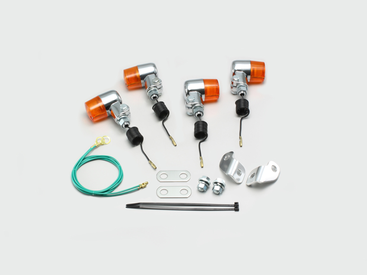 ミニウィンカー アルミ製クロームメッキ アルミ製 取付ステー取付ボルト M10×P1.25 オレンジレンズ 組込球 12V10Wフェンダーレスでも取付可 専用ジョイントハーネス付