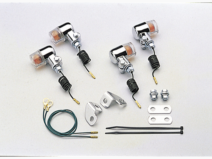 ミニウィンカー アルミ製クロームメッキ アルミ製 取付ステー取付ボルト M10×P1.25 クリアレンズ 組込球 12V10Wフェンダーレスでも取付可 専用ジョイントハーネス付