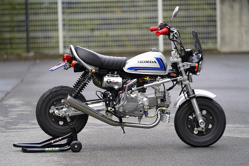 【注意事項】※インジェクション車は適合不可SPクラシックマフラーはスリート走行を前提に、走りの楽しさを加速させる究極のストリートマフラーです。流行りを求めないベーシックなマフラーデザインを追求し、シンプルなスタイルでありながら確かな性能を発揮するあらゆるレベルのユーザーにお薦めするマフラーです。ステンレス製バフ仕上げのエキゾーストパイプ、サイレンサーを採用。日本製の高品質、高性能マフラーです。テスト走行を繰り返し完成させた完成度の高いマフラーは49〜124ccエンジン対応でエンジン性能を如何なく発揮します。ノーマルヘッドやZシリーズ(当社製品)ヘッド対応でセットにはオールラウンドユースに適した口径Φ19mmバッフルが標準装備です。別販売にてΦ16、22mmバッフルを発売中です。またGクラフト製、OVER製バックステップにも対応します。別販売にてアルミ製バックステップ用ブレーキピポットスペーサーをご用意しています。マフラー取付けはシンプルな構造のブレーキピポット取付け仕様です。■内容品マフラー本体(エンブレムなし) 1ヶミドルサイズバッフルΦ19mm 1ヶ ブレーキペダルピポット平ワッシャーΦ15.0×Φ26.0×1.6mm 1ヶシリンダーヘッド取付けO形状ガスケット 1ヶスナップピンM14 1ヶ六角UナットM6 2ヶキャップボルトM6×10 1ヶ■マフラー取り付時のアドバイス事項・マフラーはGクラフト製、OVER製バックステップとの同時装着が可能です(2016年12月時点迄に発売の製品に限る)。・エンジンアンダーカウル装着車の場合、アンダーカウルをカットする加工が必要な場合がございます。ソリッドアップ製モンキー用アンダーカウルは後方部分のカット加工が必要です。・リアディスクブレーキとの干渉がなく取付け可能です。・キックスターターペダルは可倒式へ変更が必要です(ノーマルキックスターターペダルは使用できません)。・取付けステーは49〜124ccまで対応のロング穴仕様です。■バッフル選択方法※下記は推奨セッティングです。あくまで目安のため実走行の上、最適なバッフルをご選択ください。・Φ16 49cc〜ヘッド交換無の88ccボアアップ車(別販売/ミニモト社品番 5342)・Φ19 88cc〜106ccボアアップ車(セット標準品/ミニモト社品番 5343)・Φ22 88cc〜124ccボアアップ車(別販売/ミニモト社品番 5344)