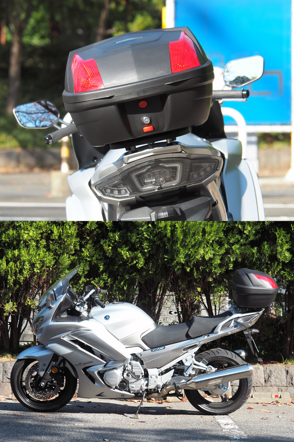 FJR1300A/AS用 リアボックス装着用アタッチメント×1ツーカラーズレンズリアボックス 32リットル×1 取り付けに必要な台座・ネジ類が付いたフルセット。更にセット販売だけの限定特典 リアボックスインナーを付属します。【リアボックス容量】大きさ:32リットル/縦:31センチ 横:47センチ 奥行き:42センチ
