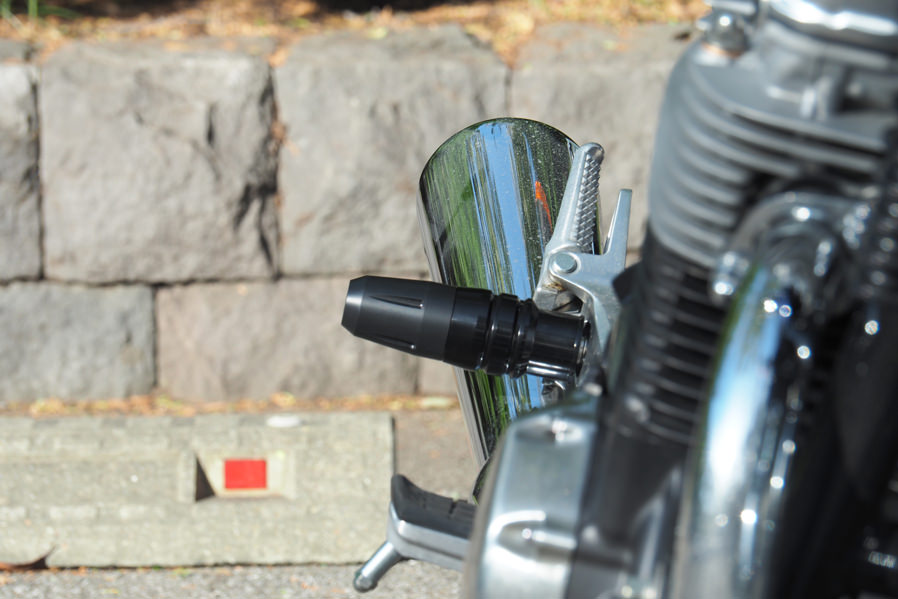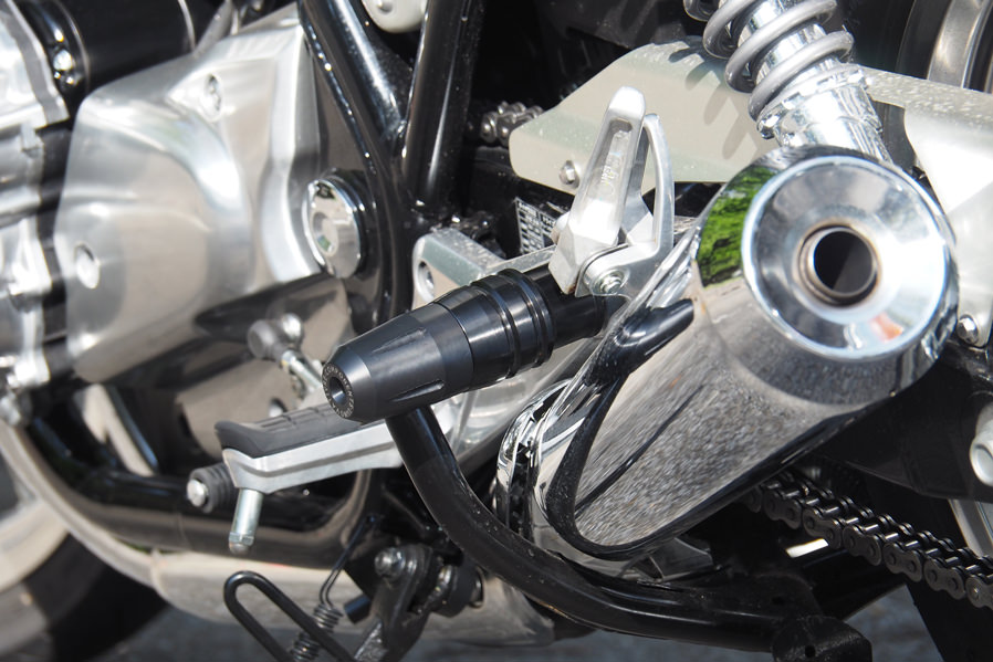 CB1100シリーズの中で唯一左右二本出しのマフラーを採用しているCB1100EX用に転倒時などのダメージを軽減するマフラーガードを開発致しました。ステップよりも外側にジュラコン(R)部分が出るので立ちゴケしてしまった際などにも有効です。販売中のエンジンガードと共通のデザインですので合わせて装着するのもオススメです。本体:アルミ・ブラックアルマイト仕上げパッド部分・樹脂製※ジュラコン(R)は、ポリプラスチックス株式会社が日本その他の国で保有する登録商標です。