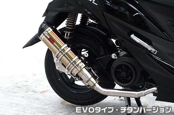 新時代から導き出された究極のイノベーションデザインで非常にインパクトあるマフラーです。サイレンサーはチタンバージョンです。チタンバージョンは軽量高剛性なチタニウム製パイプにレインボーの焼き色を付けた、非常に高級感の高い仕上がりです。アルミ素材から削り出したビレットタイプのエンドに、ブラックアルマイト処理を施したEVOタイプです。消音用のバッフルが2個装備されている【 ダブルバッフル仕様 】となっており、バッフル無し、バッフル1個装着、バッフル2個装着と3種類の排気音を選べるサウンドセレクトスタイルになっています。バッフルはSUS304ステンレスタイプ(EVOタイプはプレートタイプ)とアルミタイプの2種類のバッフルが装備されています。音量はバッフル2個装着時の排気音量が 約86db(法定規制値内音量)、バッフル1個装着時の排気音量が 約88db、バッフル非装着時の排気音量が 約90db です。音質も耳障りな音でなく重低音のサウンドになっていますので、ノーマルマフラーではちょっと物足りない方にオススメです。サイレンサーはストレート構造ではなく隔壁構造になっていますので、音量は静かめに抑えられており近所迷惑になる事無く安心して走行できます。低中速を落とすことなく高回転でスムーズに回り扱いやすい設定になっています。振動防止のためサイレンサーとエキパイが2分割となる安心設計になっています。サイレンサーは、2点止めになっていますのでしっかりと固定でき、耐久性にも優れています。無加工ボルトオンにて装着できますので、必要な工具があれば簡単に取り付けできます。(取り付けに必要なボルト類は全て付属しております。)サイレンサーバンドにはスリットタイプを採用してデザインにもこだわっています。サイレンサーの固定にはサイレンサーバンドを採用し、バフ仕上げを施したSUS304ステンレス製丸棒で組んだステーを介して固定しておりますので、従来のステーの固定より車体と調和した高級感あふれるマフラーです。SUS304ステンレス製で、エキパイからサイレンサーまでバフ仕上げを施しています。ローダウンにも対応しておりますので、安心してご使用下さい。※車体型式:2BJ-DV12B に適合します。その他の型式には適合しませんのでご注意下さい。※平成22年4月1日より施行された認証制度に適合する認証マフラーではありません。ご理解の程よろしくお願い致します。