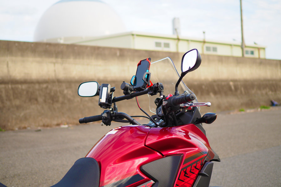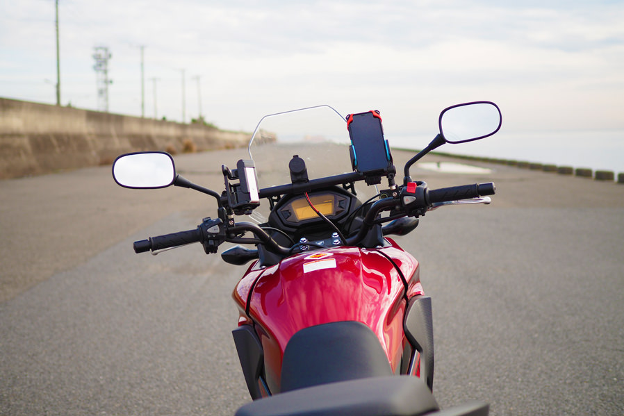 バー本体:スチールカチオン塗装仕上げ クランプ:アルミウレタン塗装仕上げ キャップ:ABS ボルト類:スチール・ステンレスパイプ長400mm ガジェットマウント範囲 310mm複数のガジェットをマウントする事を目的に開発したバー。マルチガジェットマウントバーです。■複数がジェットをマウントするのに最適な剛性、設計を取り入れています■スマートフォンやドリンクホルダー、USBチャージャーやナビゲーションシステムなどハンドル周りにマウントして使うガジェットは増えており、快適にバイクに乗るために複数のガジェットをマウントして使用しているユーザーが増加傾向にあるのは前述したとおりです。マルチガジェットマウントバーは車種によって取り付け方法が若干異なりますが複数のガジェットをマウントしても問題ない強度を確保しバー本体は国産ハンドルと同じ22.2φを採用。バイク用のガジェットであれば殆どの製品をマウントする事が可能です。車体との干渉などを避けるために車種によってバーの長さは異なりますが3〜5個程度のガジェットをマウントする事を想定しています。■メーターの視認性には充分配慮して設計しています■メーターにはスピードやガソリン残量、オドメーターなど大事なインフォメーションが表示されます。そのためガジェットを装着した際にメーターの視認性が悪くなってしまうのは避けたいところです。ガジェットを装着する位置は工夫しなければなりませんが、可能な限りメーターの視認性が悪くならない位置にバーがくるように調整しました。■ハンドルをフルにきってもガジェットがあたりにくい設計です■ハンドルをフルできった時にスイッチボックスとガソリンタンクのクリアランスが狭いバイクは多々あります。そのためハンドルバーに直接ガジェットをマウントすると干渉してしまうリスクがあります。マルチガジェットバーはハンドルバーよりガジェットをマウントするバーが高い位置になるようしているので干渉しずらい設計です。■バー部分はスチール材を採用しカチオン塗装仕上げです■ガジェットの脱着を繰り返す事を前提に設計したのでバー本体部分は硬く摺れに強いスチールを採用しカチオン塗装で仕上げています。密着性に優れた厚い塗膜を形成することができるため、防錆、防食効果の高い塗装です。■クランプ部分はアルミの塗装仕上げです■バーをクランプする部分は軽量で腐食に強いアルミを採用し塗装で仕上げています。バーエンド部分にはプラスチック製のキャップを採用。雨天時に水などが入るのを防ぎます。全ての素材を同じにするのではなく、場所によって最適な素材を選択しています。