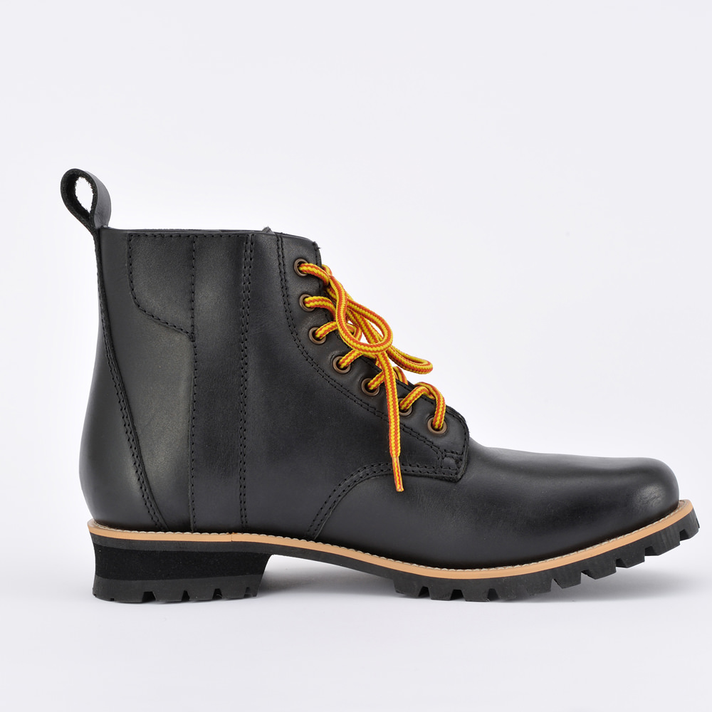 レースアップでオーソドックスなデザインのショートブーツ。ソール形状、かかと高、広めのソール幅などラスト(木型)からこだわった設計。ライディングはもちろん、歩いたときの使用感も考慮しました。素材/ア ッパー部分:牛革、内装:ポリエステル、ソール部分:合成ラバー※ 防水機能はありません。