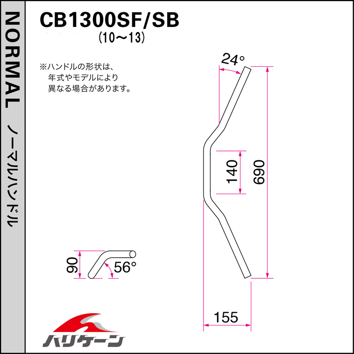 ナロー3型 ハンドルセット ブラック HURRICANE(ハリケーン) CB1300SF(10〜13年 ABS車)