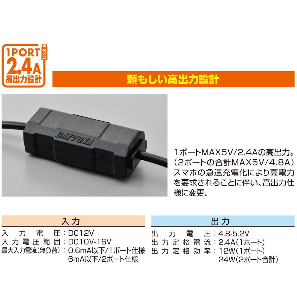 バイク専用電源スレンダーUSB 1ポート2.4A DAYTONA(デイトナ)