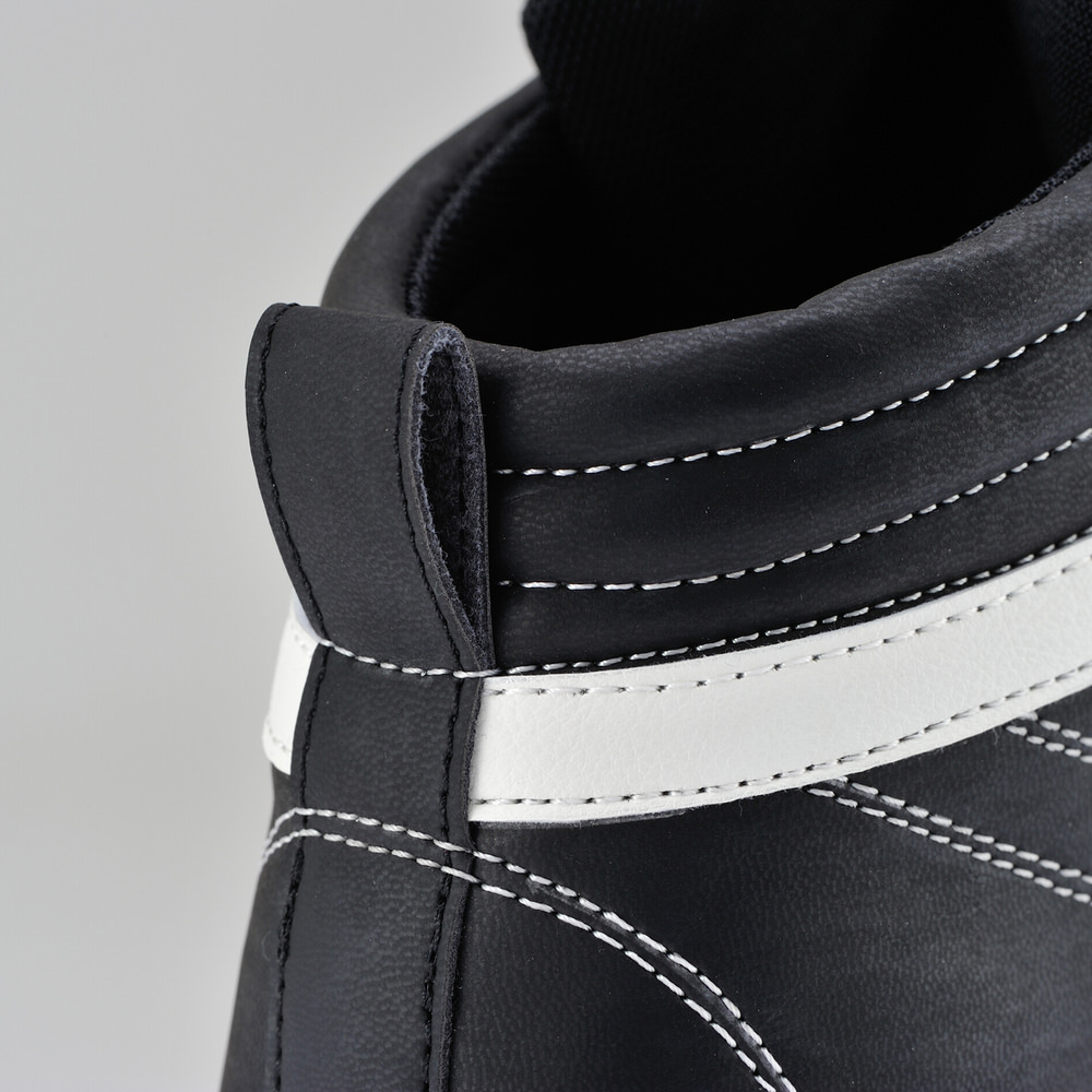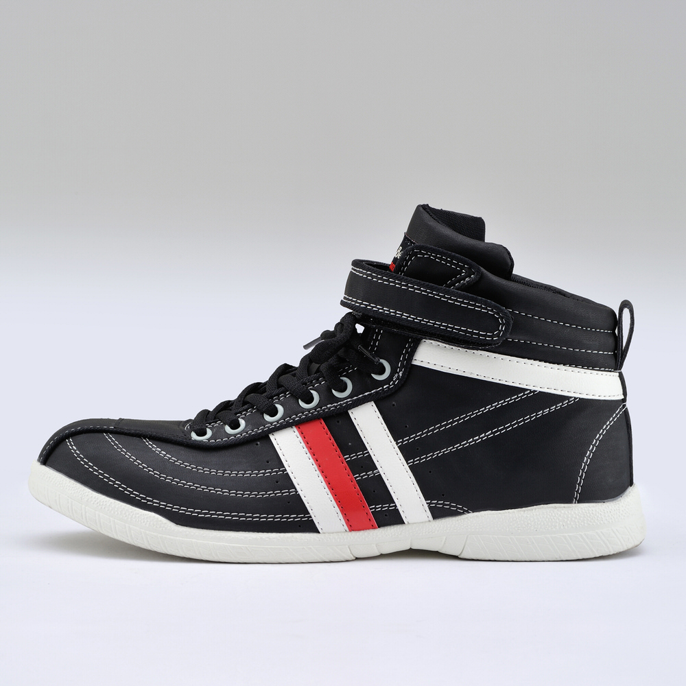 面ファスナーベルト付きで、脱ぎ履きしやすいハイカットスニーカータイプ。セイフティーシューズ同等強度の、つま先鉄芯入りシューズ。左足はインナーシフトパッド付きなので、シフトチェンジの衝撃を抑えるとともに、左右シンメトリーなデザインを実現。側面下部にパンチング加工をすることで、蒸れを軽減させます。素材/ アッパー:ポリウレタン合成皮革(PU)、ライニング:ポリエステルメッシュ、ソール:1層合成ゴム、インソール:ゴム製スポンジ・ポリエステルメッシュ(表)、先芯:鋼鉄製※セイフティーシューズ同等レベルの鉄芯を採用しておりますが、JSAA やJIS 規格を取得した商品ではありません。※防水機能はありません。