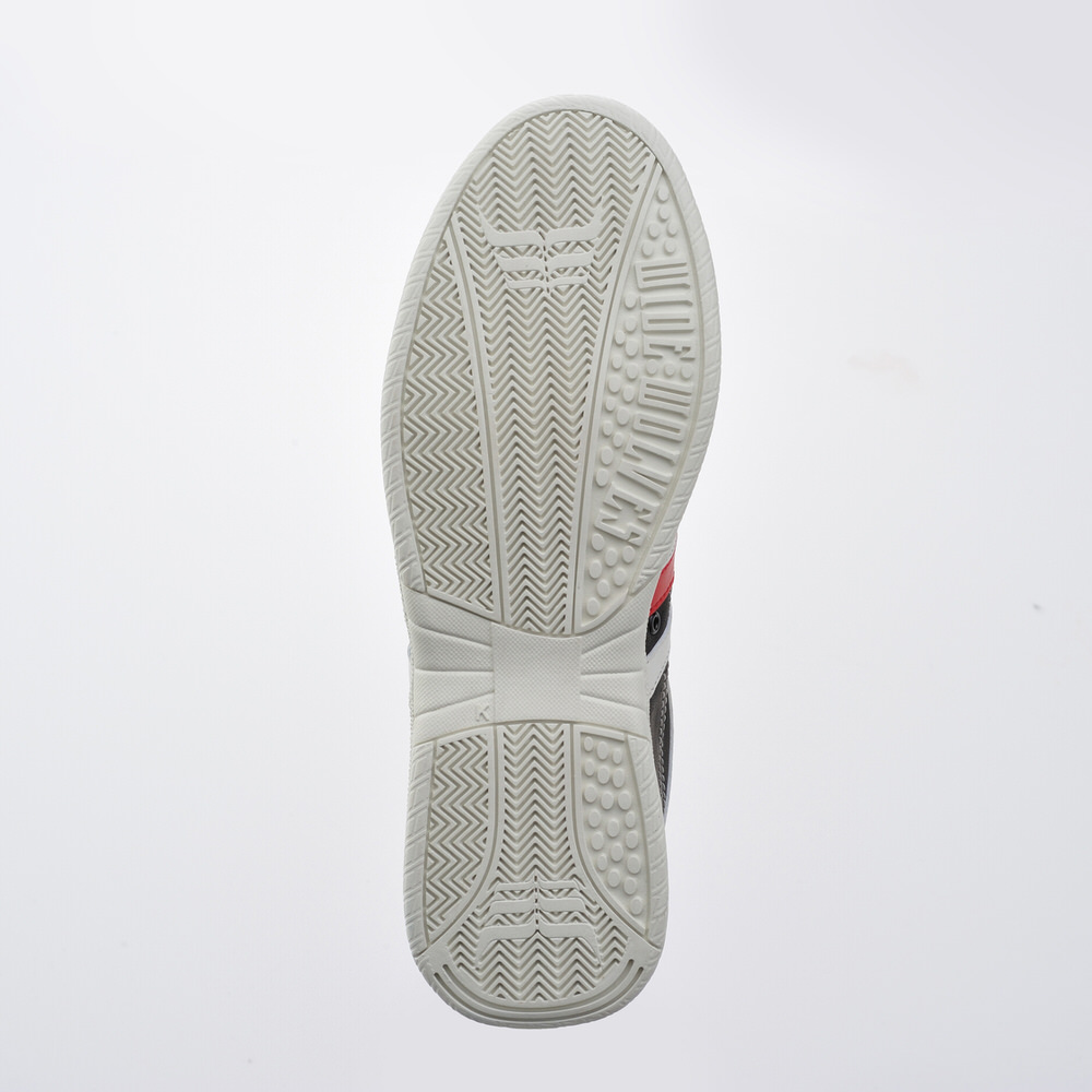 素材/ アッパー:ポリウレタン合成皮革(PU)、ライニング:ポリエステルメッシュ、ソール:1層合成ゴム、インソール:ゴム製スポンジ・ポリエステルメッシュ(表)、先芯:鋼鉄製