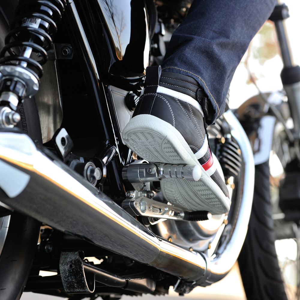 左足はインナーシフトパッド付きなので、シフトチェンジの衝撃を抑えるとともに、左右シンメトリーなデザインを実現。側面下部にパンチング加工をすることで、蒸れを軽減させます。