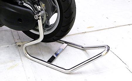 レースシーンからのフィードバック商品で、純正スタンドを取り外してしまうレース車両には必須アイテムです。レース活動ではすでに大活躍の商品で、大変助けられています。スタンドを楽に掛けることができ、安定しているので整備作業も安心して行うことが出来ます。
