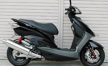 ※平成22年4月1日より施行された認証制度に適合する認証マフラーではありません。ご理解の程よろしくお願い致します。このマフラーは、現在販売している人気の3タイプのマフラーのいい所ばかりを集めて全体的なバランスなど細かいところまでこだわりぬいて製作いたしました。1. マ?ベラスレーシングのレーシーなサイレンサー2. ビッグバズ?カーの迫力のエキパイ3. ジャイアントキラーの極太なジョイント部分車体のラインに調和するようにサイレンサーの位置を吟味し、あらゆるカスタムに似合うようシンプルながら高級感をイメージし、たくさんの方々からの意見を取り入れ製作しました。音量、音質にもとことん拘って、何本ものテスト品の中からベストな構造を導き出して完成させました。うるさすぎず静かすぎず、歯切れの良い重低音サウンドを醸し出します。バッフル(消音用のパーツ)を標準装備しておりますので、簡単な作業で2種類の音量が選択できます。性能面でも低中速の落ち込みをなくしスムーズな走行を実現させています。ローダウン車にも対応しておりますが、極端にローダウンしている車両(30mm以上ダウン、大きめのサイドカウル装着車)は、マフラーとボディが干渉する恐れがありますので、購入・装着にはご注意ください。本品はエキパイにO2センサー取付け口が装備されていない、シグナスX SE44J 1YP 用 のマフラーになります。【音量】バッフル装着時:87dbバッフル非装着時 :91db
