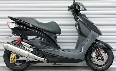 ※平成22年4月1日より施行された認証制度に適合する認証マフラーではありません。ご理解の程よろしくお願い致します。マフラー選びでお悩みの方、まずはこのマフラーからいかがでしょうか?デザインは幅広い層に気に入って頂けるよう、車体のラインに調和するようにサイレンサーの位置を吟味し、あらゆるカスタムに似合うようにシンプルながら高級感溢れるマフラーに仕上げました。サイレンサー出口には、内側にカールしたカールエンドタイプを使用しています。サイレンサーは迫力のある大型の125mm径を採用しました。音量、音質にもとことん拘って、何本ものテスト品の中からベストな構造を導き出して完成させました。うるさすぎず静かすぎず、歯切れの良い重低音サウンドを醸し出します。バッフル(消音用のパーツ)を標準装備しておりますので、簡単な作業で2種類の音量が選択できます。性能面でも低中速の落ち込みをなくしスムーズな走行を実現させています。ローダウン車にも対応しておりますが、極端にローダウンしている車両(30mm以上ダウン、大きめのサイドカウル装着車)は、マフラーとボディが干渉する恐れがありますので、購入・装着にはご注意ください。本品はエキパイにO2センサー取付け口が装備されていない、シグナスX SE44J 1YP 用 のマフラーになります。【音量】バッフル装着時:88dbバッフル非装着時 :92db※画像中のインジェクタータンクは本商品には含まれません。