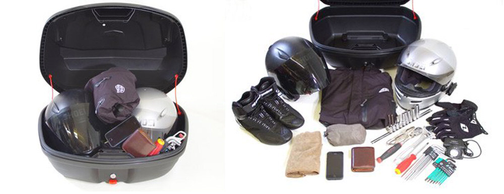 MT-07(2018)用 リアボックス装着用アタッチメント×1ツーカラーズレンズリアボックス エクスクルーシブ 48リットル×1 取り付けに必要な台座・ネジ類が付いたフルセット。更にセット販売だけの限定特典 リアボックスインナーを付属します。リアボックス容量|大きさ:48リットル/縦:33センチ 横:58センチ 奥行き:45センチ