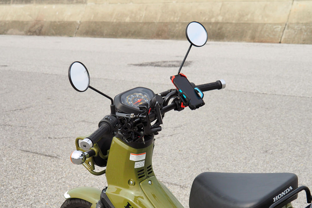 メーターにはスピードやガソリン残量、オドメーターなど大事なインフォメーションが表示されます。そのためガジェットを装着した際にメーターの視認性が悪くなってしまうのは避けたいところです。ガジェットを装着する位置は工夫しなければなりませんが、可能な限りメーターの視認性が悪くならない位置にバーがくるように調整しました。