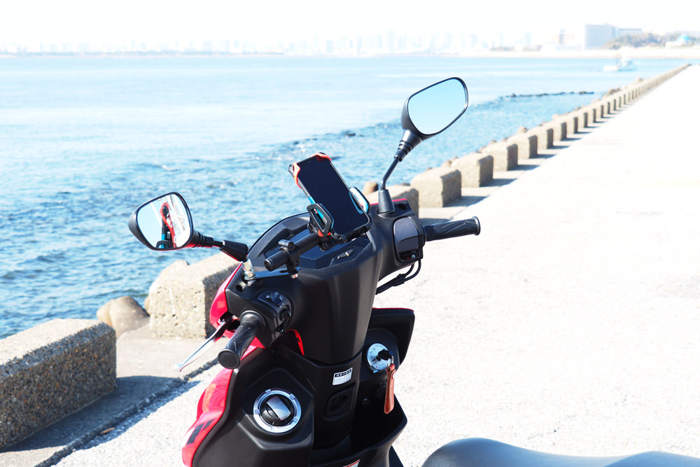 バー本体:スチールカチオン塗装仕上げ クランプ:アルミウレタン塗装仕上げ キャップ:ABS耐荷重は650gナビゲーションシステムもマウント可能耐荷重は650gまで対応する設計としました。650gとは具体的にはナビゲーションシステムと取り付けステー。ドリンクホルダーと500mlの飲み物程度となります。スマホとスマホホルダーは機種にもよりますが約350gとなります。バーはスチールのカチオン塗装仕上げバー部分はスマートフォンホルダーの脱着を繰り返す事を前提に素材を選定しました。そのため素材には硬度に優れたスチールを採用し、耐食性、耐湿性に優れ錆などに強いカチオン塗装で仕上げています。クランプは軽量なアルミを採用バーをクランプする部分は軽量で耐食性に優れたアルミを採用しました。バーを黒のカチオン塗装で仕上げているので質感を合わせてクランプも塗装で仕上げています。
