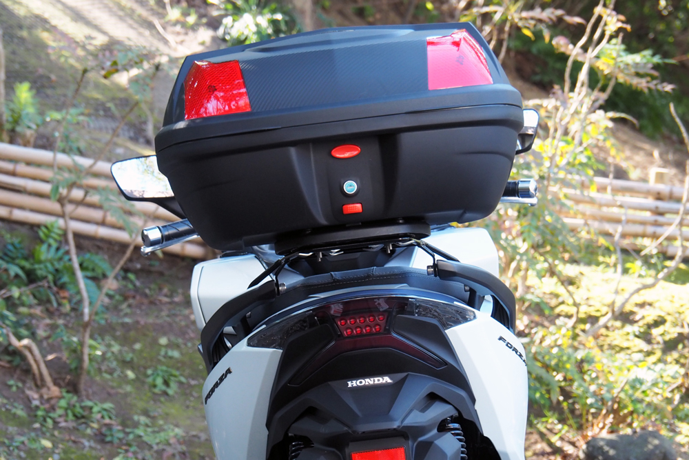 フォルツァ(MF13))用 リアボックス装着用アタッチメント×1ツーカラーズレンズリアボックス エクスクルーシブ 48リットル×1 取り付けに必要な台座・ネジ類が付いたフルセット。更にセット販売だけの限定特典 リアボックスインナーを付属します。リアボックス容量|大きさ:48リットル/縦:33センチ 横:58センチ 奥行き:45センチ