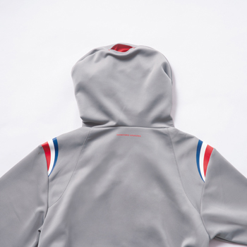 イベントやレース観戦などにおすすめのお洒落なスタイリッシュパーカータウンユースからイベント用まで様々な分野で活躍できるアイテム。オリジナルのパターンでスタイリッシュなデザイン。グローブと袖の隙間が空かないように、袖は長く伸び、親指用の穴あり。フードには走行中でも風が抜けるようにベンチレーションを装備。【素材】表地:ポリエステル100%本品カラー:グレー