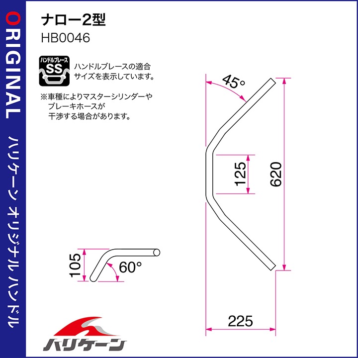 ナロー2型 ハンドルセット クロームメッキ HURRICANE(ハリケーン) CB125R(18年)
