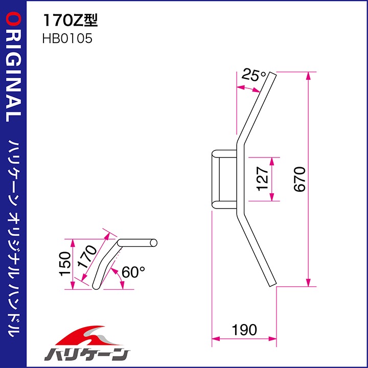 170Z型 ハンドルセット クロームメッキ HURRICANE(ハリケーン) エストレヤRS(95〜06年)