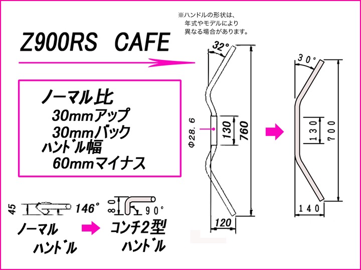 コンチ2型 ハンドルキット クロームメッキ HURRICANE(ハリケーン) Z900RS CAFE(18年)