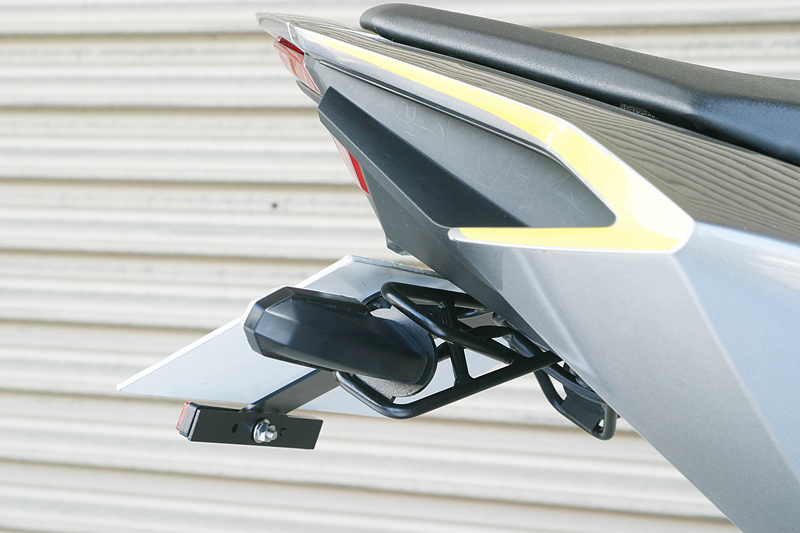 このナンバー灯とリフレクターを使用することにより、トラス構造のステーと相まって、より一層のシンプル&レーシースタイルを完全な形としています。