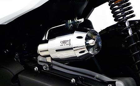 還元パイプ、インジェクションバルブホースに対応しております。従来のエアークリーナーKitより、さらに低価格で手軽にパワーフィルター化できる今までに無いKitです。ボディはプラスチック製でクロムメッキを施しております。インテーク部分はステンレス製バフ仕上げで、取付ステーには強度の強い12mm径のステンレス丸棒を採用し、幾度ものテストを重ね完成させていますので、強度、耐久性はバッチリです。ノーマルエアークリーナーから、簡単にボルトオンで付け替えできます。ローダウン車両にも対応いたします。クリーナーにはパワーフィルターが装備されています。従来はパワーフィルターにあわせて、インジェクションのセッティングを行わなくてはいけませんでしたが、この商品は必要吸気量にあわせて無段階に調整できますので、インジェクションセッティングをする必要はありません。還元パイプ、インジェクションバルブホース対応ということもあり、簡単にセッティング出しやすく、パワーアップが計れます。画像(1)、(2)は、サイレンサー型エアークリーナーボックスの内部で、(1)はエアーの量を最小限した状態。(2)はエアーの量を最大限にした状態です。ノーマルマフラー、ウイルズウィン製マフラーを付けた場合のエアーの量は、最小限から、15mm〜25mmのばした範囲で、ベストセッティングが捜し出せます。※ボアアップ、駆動系、抜けの良いマフラーに変更などの改造をされている場合は、インジェクションコントローラーなどでのセッティングが必要となることがあります。また、さらなるパワーアップを望む方にもインジェクションコントローラーなどでのセッティングは必要です。デザインカスタム重視の方、手軽にパワーフィルター化したい方などに特にお勧めです。