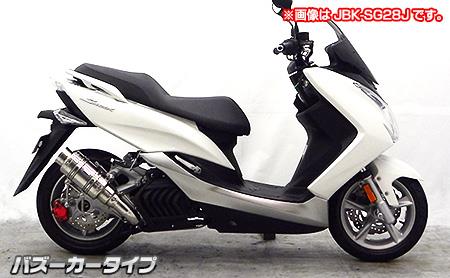 注意※平成22年4月1日より施行された認証制度に適合する認証マフラーではありません。ご理解の程よろしくお願い致します。最近流行しつつあるサイレンサー短くした、最先端のトレンドマフラーです。これからはコンパクトなマフラーが主流になりそうな流れがビックスクーター界で起きていますので、ショートタイプをラインナップに入れました。極端に派手すぎずできるだけシンプルに自然なラインをイメージして制作しました。ステーには強度の高い12mm径のステンレス丸棒を使用しており、幾度ものテストを重ねて、高強度で耐久性に優れた製品に仕上げました。材質は、耐久性、耐食性の高いステンレス製になります。装着はステーを2点止めで固定し、サイレンサーをバンドで止めてエキパイをエンジン側に固定するだけですので比較的簡単に取り付けできます。音量、音質にもとことん拘って、歯切れの良いサウンドを醸し出します。バッフル(消音用のパーツ)を標準装備しておりますので、簡単な作業で2種類の音量が選択できます。ローダウン車にも対応できるよう製作しています。ローダウン車(ウイルズウィン製リアショック装着車)でのテスト走行では、問題ありませんでしたが、極端なローダウン、ショックの固さ、走行条件等で場合によりボディと干渉する恐れがあります。走行時にはリアショックを一番固い設定にして使用してください。サイレンサー出口は バズーカータイプです。バッフル(消音用のパーツ)を標準装備。2種類の音量が選択可能。バッフル装着時―排気音量 約 89db(法定音量規制内)バッフル非装着時―排気音量 約 93db注意※平成22年4月1日より施行された認証制度に適合する認証マフラーではありません。ご理解の程よろしくお願い致します。