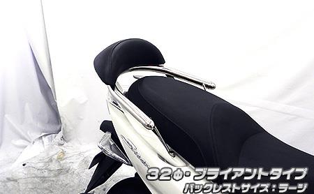 今、ローダウンはスクーターカスタムの定番となっておりますが、そのローフォルムに合わせて出来るだけ車体全体を低く見せるために、車体との一体感を追求したタンデムバーを開発いたしました。車体に沿うように低くデザインされているのでボディラインにフィットし、かつ極太の32mm径のステンレスパイプを採用しましたので、存在感、目立ち度は抜群です。仕上げはバフ掛けを施していますので、高級感タップリでドレスアップには最適の逸品です。バーが極太なので、パッセンジャーが握りやすく力を入れやすいので、安全性も高くなっております。ユーザー様により便利でお手軽に装着して頂くため、大型バックレストをウイルズウィンオリジナルで製作しました。従来の価格より大幅に値下げする事に成功しましたので、よりお求めやすくなりました。オリジナルバックレストは型から興して製作していますので、見た目も良く耐久性に優れるしっかりとした作りになっています。サイズは、ラージです。材質は、耐久性、耐腐食性の高いSUS304ステンレス製です。仕上げはバフ掛けを施していますので、高級感タップリでドレスアップにも最適の逸品です。バーエンドの形状は、ブライアントタイプです。