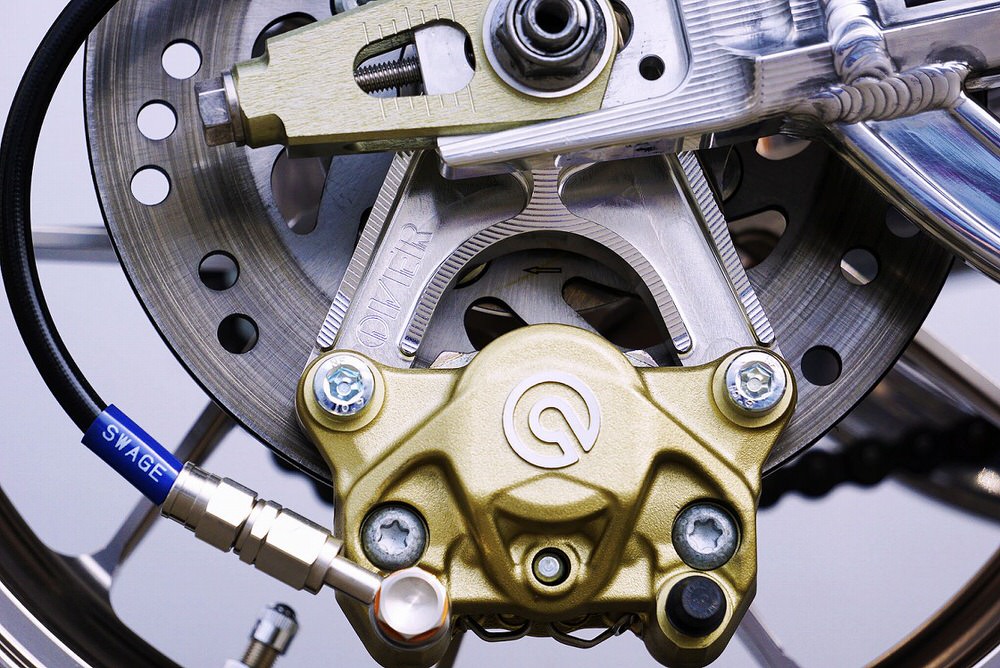待望のブレンボ対応MONKEY125用キャリパーサポートが登場機能性と造形美の両方にこだわり開発確かな強度とアルミ削りだしによる美しさが特徴の商品ですキャリパーをブレンボに交換し車両性能のUPとともにリア周りのワンポイントドレスアップとしてお楽しみください製品詳細このキャリパーサポートはロワーマウント(下側)用ですブランボ製2P(カニ)キャリパー(φ32/φ34)用取付けボルト付属シルバーアルマイト仕上げ純正ブレーキローター(φ190x4t)対応純正/OVERスイングアーム対応純正/OVERホイール対応純正ブレーキホース使用可(OVERスイングアームはSTD長)(メッシュホース推奨)ブレンボキャリパーと専用バンジョーボルトは製品に付属しません。