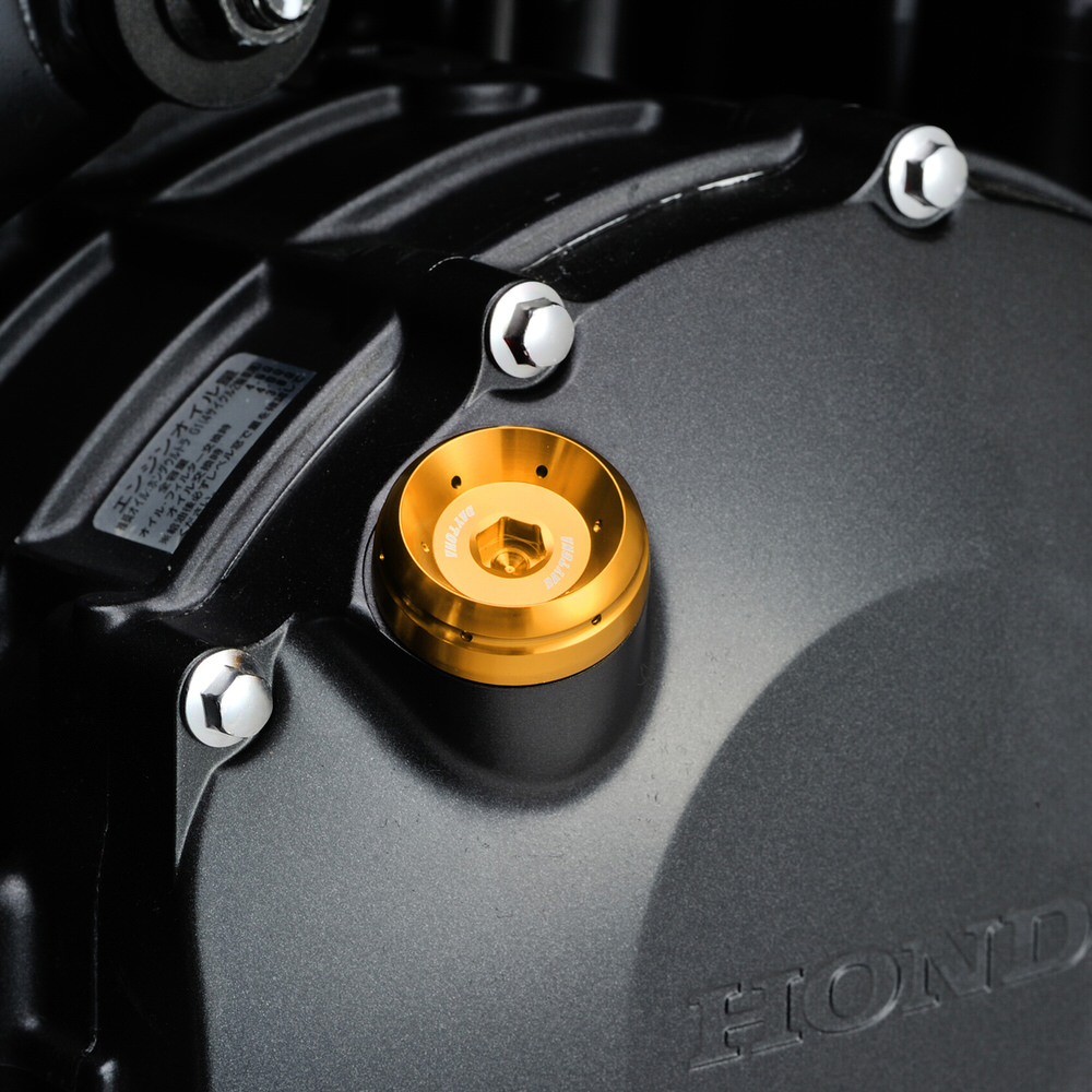 アルミ削り出しアルマイト仕上げのオイルフィラーキャップ。六角レンチで固定するので、イタズラ抑止効果もございます。回り止めワイヤー固定穴付き。サイズ:M24XP3.0Oリング付属