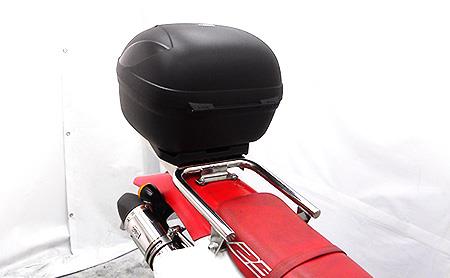 リアボックスを装着するためのリアボックス用ベースブラケットを装備したタンデムバーです。※画像中のリアボックスは付属していませんのでご注意下さい。SHAD(シャッド)、COOCASE(クーケース)、GIVI(ジビ) などのリアボックスを装着するためのリアボックス用ベースブラケットを装備したタンデムバーです。その他に SHAD(シャッド)、GIVI(ジビ) 製リアボックスのベースを取り付ける専用穴も開いていますので、SHAD(シャッド)、GIVI(ジビ) 製リアボックスもボルトオンで取り付け可能です。その他汎用リアボックスも取り付け穴を利用して取り付けできます。※穴あけ加工が必要な場合もございますので何卒ご了承くださいませ。取り付けするリアボックスの容量はおよそ28Lまでのボックスをお取り付けください。リアボックスは車種よっては加工や専用ステーを別途購入しないと取り付けできませんが、タンデムバーにリアボックス用ベースブラケットを融合する事によって無加工で装着できるようにしました。タンデムバーはバランスの良い32mm径を採用。パッセンジャーが握りやすく力を入れやすいので、安全性も高くなっております。タンデムバーの材質は、耐久性、耐腐食性の高いSUS304ステンレス製です。仕上げはバフ掛けを施していますので、高級感タップリでドレスアップにも最適の逸品です。