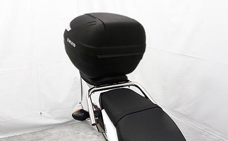 SHAD(シャッド)社 製リアボックス【 SH29 】(サイズ:380mm (L) x 400mm (W) x 300mm (H)・本体重量:約2.6kg・容量:29L)を装備したタンデムバーです。リアボックスと、タンデムバーの同時装着を可能にしたニューアイテムです。リアボックスは車種よっては加工や専用ステーを別途購入しないと取り付けできませんが、タンデムバーにリアボックス用ベースブラケットを融合する事によって無加工で装着できるようにしました。タンデムバーはバランスの良い32mm径を採用。パッセンジャーが握りやすく力を入れやすいので、安全性も高くなっております。リアボックスのスペックはディフューザーダクトなどの付加物のある大きめのフルフェイスのヘルメットが1個と、グローブなど+αが収納できるサイズで最大積載量は3kgです。材質は無塗装ブラックの材質PP(ポリプロピレン)で、丈夫な作りになっています。開閉はレバーを押すだけで簡単にできます。付属のキーでロックも可能。リアボックスの取り外しはレバーを押すだけで簡単に脱着でき、持ち運びが簡単にできるのでいたずらや盗難から大切な荷物を守る事ができます。タンデムバーの材質は、耐久性、耐腐食性の高いSUS304ステンレス製です。仕上げはバフ掛けを施していますので、高級感タップリでドレスアップにも最適の逸品です!デザインカスタム重視の方、タンデムが多い方などに特にオススメです。リアボックス用ベースブラケットには、GIVI(ジビ)社 製、COOCASE(クーケース)社 製リアボックスのベースを取り付ける専用穴も開いていますので、それぞれのリアボックスもボルトオンで取り付け可能です。(穴あけ加工が必要な場合がございます。)その他汎用リアボックスも取り付け穴を利用して取り付けできます。