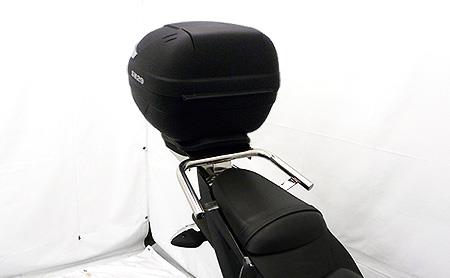 SHAD(シャッド)社 製リアボックス【 SH29 】(サイズ:380mm (L) x 400mm (W) x 300mm (H)・本体重量:約2.6kg・容量:29L)を装備したタンデムバーです。リアボックスと、タンデムバーの同時装着を可能にしたニューアイテムです。リアボックスは車種よっては加工や専用ステーを別途購入しないと取り付けできませんが、タンデムバーにリアボックス用ベースブラケットを融合する事によって無加工で装着できるようにしました。タンデムバーはバランスの良い32mm径を採用。パッセンジャーが握りやすく力を入れやすいので、安全性も高くなっております。リアボックスのスペックはディフューザーダクトなどの付加物のある大きめのフルフェイスのヘルメットが1個と、グローブなど+αが収納できるサイズで最大積載量は3kgです。材質は無塗装ブラックの材質PP(ポリプロピレン)で、丈夫な作りになっています。開閉はレバーを押すだけで簡単にできます。付属のキーでロックも可能。リアボックスの取り外しはレバーを押すだけで簡単に脱着でき、持ち運びが簡単にできるのでいたずらや盗難から大切な荷物を守る事ができます。タンデムバーの材質は、耐久性、耐腐食性の高いSUS304ステンレス製です。仕上げはバフ掛けを施していますので、高級感タップリでドレスアップにも最適の逸品です!デザインカスタム重視の方、タンデムが多い方などに特にオススメです。リアボックス用ベースブラケットには、GIVI(ジビ)社 製、COOCASE(クーケース)社 製リアボックスのベースを取り付ける専用穴も開いていますので、それぞれのリアボックスもボルトオンで取り付け可能です。(穴あけ加工が必要な場合がございます。)その他汎用リアボックスも取り付け穴を利用して取り付けできます。