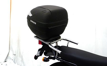 SHAD(シャッド)社 製リアボックス【 SH29 】(サイズ:380mm (L) x 400mm (W) x 300mm (H)・本体重量:約2.6kg・容量:29L)を装備したタンデムバーです。リアボックスと、タンデムバーの同時装着を可能にしたニューアイテムです。リアボックスは車種よっては加工や専用ステーを別途購入しないと取り付けできませんが、タンデムバーにリアボックス用ベースブラケットを融合する事によって無加工で装着できるようにしました。タンデムバーはバランスの良い32mm径を採用。パッセンジャーが握りやすく力を入れやすいので、安全性も高くなっております。リアボックスのスペックはディフューザーダクトなどの付加物のある大きめのフルフェイスのヘルメットが1個と、グローブなど+αが収納できるサイズで最大積載量は3kgです。材質は無塗装ブラックの材質PP(ポリプロピレン)で、丈夫な作りになっています。開閉はレバーを押すだけで簡単にできます。付属のキーでロックも可能。リアボックスの取り外しはレバーを押すだけで簡単に脱着でき、持ち運びが簡単にできるのでいたずらや盗難から大切な荷物を守る事ができます。タンデムバーの材質は、耐久性、耐腐食性の高いSUS304ステンレス製です。仕上げはバフ掛けを施していますので、高級感タップリでドレスアップにも最適の逸品です!デザインカスタム重視の方、タンデムが多い方などに特にオススメです。リアボックス用ベースブラケットには、GIVI(ジビ)社 製、COOCASE(クーケース)社 製リアボックスのベースを取り付ける専用穴も開いていますので、それぞれのリアボックスもボルトオンで取り付け可能です。(穴あけ加工が必要な場合がございます。)その他汎用リアボックスも取り付け穴を利用して取り付けできます。