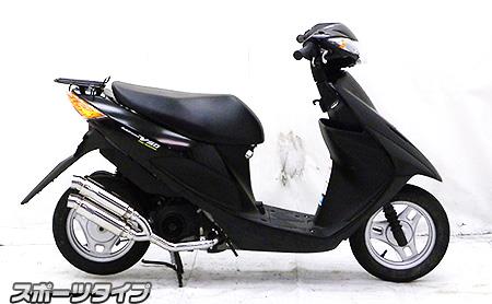 ※O2センサー非装着モデル用※平成22年4月1日より施行された認証制度に適合する認証マフラーではありません。2本出しタイプマフラーは発売以来大好評で、いまだ人気が衰えず絶好調です。アトミックツインマフラーは、ビックスクーター界で主流になりはじめたサイレンサーを短くした、最先端のドレンドマフラーです。極端に派手すぎずできるだけシンプルに自然なラインをイメージして制作しました。サイレンサーをできるだけ短くとり、車体のラインに調和させました。たくさんのお客様からの意見を取り入れて、あらゆるカスタムに似合うよう高級感が高く、かつシンプルなイメージでデザイン、製作いたしました。他社には無い時代を先行く2本出しマフラーが完成しました。バッフル(消音用パーツ)は、サイレンサー1本に対し1つずつ装備されていますので、簡単な作業で3種類の音量を選択できます。音質はとてもマイルドで重低音です。車体への固定方法は、画像では分かりにくいですがノーマルマフラーと同じ2点止めです。ローダウン車にも対応できるよう製作しています。ローダウン車でのテスト走行では問題ありませんでしたが、ショックの固さ、走行条件等で場合によりボディと干渉する恐れがあります。走行時にはリアショックを一番固い設定にして使用してください。音量:バッフル両方装着時:排気音量 約 84db音量:バッフル片側装着時:排気音量 約 86db音量:バッフル非装着時:排気音量 約 88db