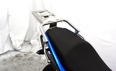 リアボックスは車種よっては加工や専用ステーを別途購入しないと取り付けできませんが、タンデムバーにリアボックス用ベースブラケットを融合する事によって無加工で装着できるようにしました。