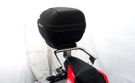 SHAD(シャッド)社 製リアボックス【 SH29 】(サイズ:380mm (L) x 400mm (W) x 300mm (H)・本体重量:約2.6kg・容量:29L)を装備したタンデムバーです。リアボックスと、タンデムバーの同時装着を可能にしたニューアイテムです。リアボックスは車種よっては加工や専用ステーを別途購入しないと取り付けできませんが、タンデムバーにリアボックス用ベースブラケットを融合する事によって無加工で装着できるようにしました。タンデムバーはバランスの良い32mm径を採用。パッセンジャーが握りやすく力を入れやすいので、安全性も高くなっております。リアボックスのスペックはディフューザーダクトなどの付加物のある大きめのフルフェイスのヘルメットが1個と、グローブなど+αが収納できるサイズで最大積載量は3kgです。材質は無塗装ブラックの材質PP(ポリプロピレン)で、丈夫な作りになっています。開閉はレバーを押すだけで簡単にできます。付属のキーでロックも可能。リアボックスの取り外しはレバーを押すだけで簡単に脱着でき、持ち運びが簡単にできるのでいたずらや盗難から大切な荷物を守る事ができます。タンデムバーの材質は、耐久性、耐腐食性の高いSUS304ステンレス製です。仕上げはバフ掛けを施していますので、高級感タップリでドレスアップにも最適の逸品です!デザインカスタム重視の方、タンデムが多い方などに特にオススメです。リアボックス用ベースブラケットには、GIVI(ジビ)社 製、COOCASE(クーケース)社 製リアボックスのベースを取り付ける専用穴も開いていますので、それぞれのリアボックスもボルトオンで取り付け可能です。(穴あけ加工が必要な場合がございます。)その他汎用リアボックスも取り付け穴を利用して取り付けできます。
