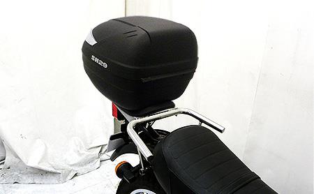 SHAD(シャッド)社 製リアボックス【 SH29 】(サイズ:380mm (L) x 400mm (W) x 300mm (H)・本体重量:約2.6kg・容量:29L)を装備したタンデムバーです。リアボックスと、タンデムバーの同時装着を可能にしたニューアイテムです。リアボックスは車種よっては加工や専用ステーを別途購入しないと取り付けできませんが、タンデムバーにリアボックス用ベースブラケットを融合する事によって無加工で装着できるようにしました。タンデムバーはバランスの良い32mm径を採用。パッセンジャーが握りやすく力を入れやすいので、安全性も高くなっております。リアボックスのスペックはディフューザーダクトなどの付加物のある大きめのフルフェイスのヘルメットが1個と、グローブなど+αが収納できるサイズで最大積載量は3kgです。材質は無塗装ブラックの材質PP(ポリプロピレン)で、丈夫な作りになっています。開閉はレバーを押すだけで簡単にできます。付属のキーでロックも可能。リアボックスの取り外しはレバーを押すだけで簡単に脱着でき、持ち運びが簡単にできるのでいたずらや盗難から大切な荷物を守る事ができます。タンデムバーの材質は、耐久性、耐腐食性の高いSUS304ステンレス製です。仕上げはバフ掛けを施していますので、高級感タップリでドレスアップにも最適の逸品です!デザインカスタム重視の方、タンデムが多い方などに特にオススメです。リアボックス用ベースブラケットには、GIVI(ジビ)社 製、COOCASE(クーケース)社 製リアボックスのベースを取り付ける専用穴も開いていますので、それぞれのリアボックスもボルトオンで取り付け可能です。(穴あけ加工が必要な場合がございます。)その他汎用リアボックスも取り付け穴を利用して取り付けできます。