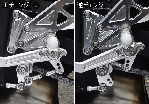 アルミ削り出し製4ポジション UP:30/40mm BACK:00/10mm純正のブレーキスイッチがそのままご利用可能です。ステップバーの組み換えも可能です。(MFJ-Bが標準となります、組み換えはMFJ-Aに限ります)逆チェンジ仕様にも対応します。ステップバーエンドの色は購入時に白と黒から選べます。(指定がない場合は白になります、購入後の交換及びキャンセルは出来ません)ステップバーとペダルを別軸とすることにより、万が一の転倒によるペダルへのダメージを減らします。備考※逆チェンジ可能