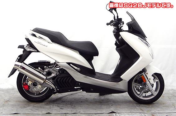 ※平成22年4月1日より施行された認証制度に適合する認証マフラーではありません。ご理解の程よろしくお願い致します。某有名マフラーメーカの製作になりますので、低価格ながら完成度は非常に高い作りになっています。オールSUS304ステンレス製で、エキパイからサイレンサーまでバフ仕上げを施しています。ビッグスクーターにマッチするようエキパイ径45mm、サイレンサー径120mmの仕様で、装着時の全体的なバランスがとれた仕上がりとなっています。低中速を落とすことなく高回転でスムーズに回り扱いやすい設定になっています。振動防止のためサイレンサーとエキパイが2分割となる安心設計になっています。サイレンサーは、2点止めになっていますのでしっかりと固定でき、耐久性にも優れています。無加工ボルトオンにて装着できますので、必要な工具があれば簡単に取り付けできます。(取り付けに必要なボルト類は全て付属しております。)サイレンサーはストレート構造ではなくフロント部にパンチングを施した作りになっていますので、音量は静かめに抑えられており近所迷惑になる事無く安心して走行できます。バッフル装着時 約85db(法定規制値内音量)、バッフル非装着時 約88dbになります。音質も耳障りな音でなく重低音のサウンドになっていますので、ノーマルマフラーではちょっと物足りない方にオススメです。ローダウンにも対応しておりますので、安心してご使用下さい。
