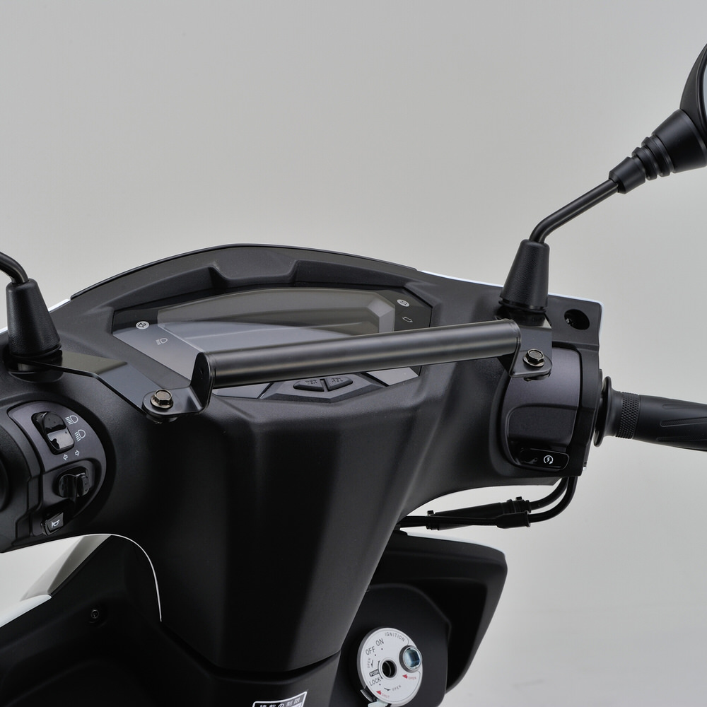 ボルトオンで簡単に取り付けできるステー付属のマルチマウントバーシリーズにシンプルなモデルが登場。φ22.2のパイプに様々なアイテムをマウントできる基本機能は変わらず、存在を主張しないブラックボディ&ステーを採用。パイプ部、ステー:スチール黒塗装ミラーアダプター部:スチール黒塗装※マスターシリンダー、リアブレーキホルダー等を社外品のものと交換している場合、取り付けできません。※ミラーネジ変換アダプターを使って社外ミラーへ交換の場合、キット付属のミラー取付部延長アダプターと組み合わせての取り付けになり、別途対応が必要です。※転倒等でハンドルバーの曲がりやマスタシリンダーのずれが生じている場合、取り付けできない恐れがあります。