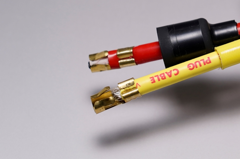 汎用プラグコード用IGコネクターです。プラグコードをIGコイルに接続する際に使用します。【製品詳細】プラグコード用IGコネクター180°プラグコード用IGコネクターカバー黒【入り数】各2ヶ【適合】外径Φ7.0〜8.5mm前後のプラグコードに使用可能です。カバーサイズ 全長34mm×最大内径Φ15mm【備考】掲載の詳細画像は実際のカシメ作業の仕上がりです。