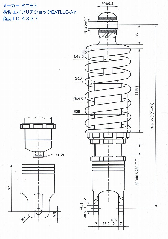 強化リアショックBATLLE-Air MINIMOTO(ミニモト) APE50(エイプ)