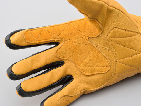 手の甲側は色々なオートバイにマッチするベーシックなデザイン。手の平側はグリップ時のフィット感を高める裁断とプロテクターを配置。裏使いの革により滑り止め効果もあり、操作感を高めます。素材:手の甲側/ゴートスキン手の平側/ゴートスキンアジャスター部/合皮