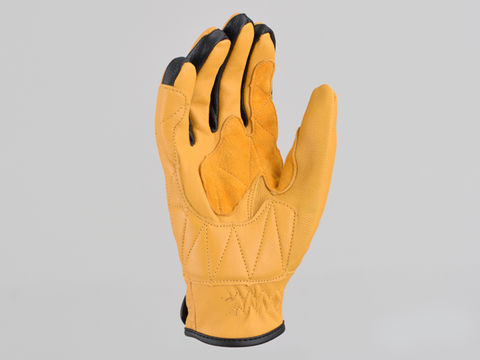 手の甲側は色々なオートバイにマッチするベーシックなデザイン。手の平側はグリップ時のフィット感を高める裁断とプロテクターを配置。裏使いの革により滑り止め効果もあり、操作感を高めます。素材:手の甲側/ゴートスキン手の平側/ゴートスキンアジャスター部/合皮