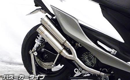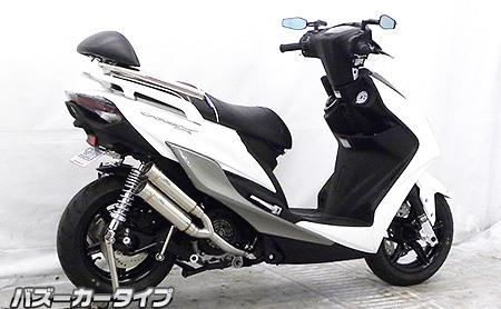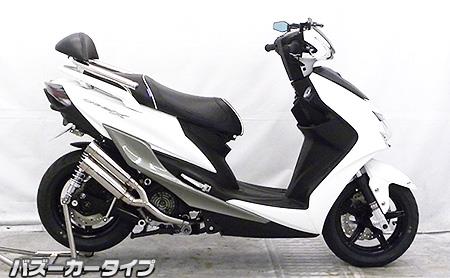 2本出しタイプマフラーは発売以来大好評で、いまだ人気が衰えず絶好調です。アトミックツインマフラーは、ビックスクーター界で主流になりはじめたサイレンサーを短くした、最先端のドレンドマフラーです。極端に派手すぎずできるだけシンプルに自然なラインをイメージして制作しました。サイレンサーをできるだけ短くとり、車体のラインに調和させました。たくさんのお客様からの意見を取り入れて、あらゆるカスタムに似合うよう高級感が高く、かつシンプルなイメージでデザイン、製作いたしました。他社には無い時代を先行く2本出しマフラーが完成しました。サイレンサー出口は、バズーカータイプです。バッフル(消音用パーツ)は、サイレンサー1本に対し1つずつ装備されていますので、簡単な作業で3種類の音量を選択できます。音質はとてもマイルドで重低音です。車体への固定方法は、画像では分かりにくいですがノーマルマフラーと同じ箇所で2点止めです。ローダウン車にも対応できるよう製作しています。ローダウン車でのテスト走行では問題ありませんでしたが、ショックの固さ、走行条件等で場合によりボディと干渉する恐れがあります。走行時にはリアショックを一番固い設定にして使用してください。材質は、耐久性、耐腐食性の高いSUS304ステンレス製です。 バッフル(消音用のパーツ)をサイレンサー1本に対し1つずつ標準装備。簡単な作業で3種類の音量が選択可能。バッフル両方装着時―排気音量 約 87db(法定音量規制内)バッフル片側装着時―排気音量 約 89dbバッフル非装着時―排気音量 約 91db