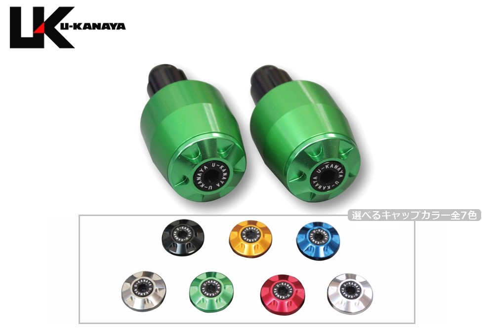 サイズ直径:32mm長さ:36mm重量:69g/1個高強度・耐食性に優れた6061アルミ材をカラーアルマイト処理しています。ハンドルバーエンド左右2個セットU-KANAYAの製品は元GPライダーの金谷秀夫氏と内商会のコラボレーションによる商品です。当社の管理の下で精密加工しております。U-KANAYAの全商品は、日本国内にて専門のスタッフが製品の組み立て及び検品を行っておりますので、安心してご使用いただけます。バーエンド本体カラー:グリーンエンドキャップカラーを【ブラック・ブルー・ゴールド・レッド・シルバー・チタンカラー・グリーン】よりご選択ください。質感の高いフルマシニング加工のバーエンドです。高強度・耐食性に優れた6061アルミ材をカラーアルマイト処理しています。車種別の取付けキットが付属しています。対応車種をご確認ください。カラーアルマイトの特性上、日光や熱により色褪せが生じる場合があります。バーエンド本体とエンドキャップを同色にした場合、アルマイトの特性上色が合わない場合があります。この商品は予告なしに価格や仕様を変更する場合があります。※車種別の取り付けキットが付属しています。対応車種を必ずご確認ください。※モニターの環境により、画像の色が実物と若干異なって見える場合がございます。