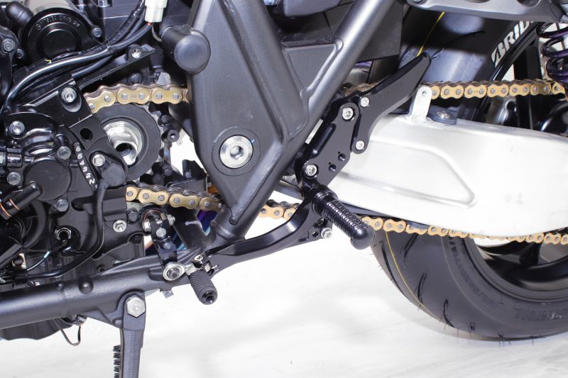 ストレスフリーなペダル操作へ。レースのために考えられた設計は、ストリートでも多くの利点があります。純正ポジションから最小限の位置変更で、サーキットからストリートまで楽しめるパフォーマンスを発揮。ステップワークを妨げる要素を徹底して排除し、操作性を追求しました。材質:鍛造アルミ7075材フル3D切削加工逆シフトチェンジ対応ノーマルブレーキスイッチ移設設計チェンジペダル用エクステンション(10mm/20mm)付属カラー:ブラックポジション1:BACK15mm、UP0mmポジション2:BACK37mm、UP20mmポジション3:BACK47mm、UP30mm