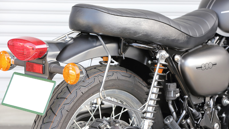 サイドバッグ装着時に、ホイールへの巻き込みリスク軽減に効果的なバッグサポート。車種専用設計により、バランスの取れた装着状態を実現しております。再販となったストリート/カフェの W800へ対応しリニューアルいたしました。セット内容】右側のみ【材質】スチール【仕上げ】クロームメッキ