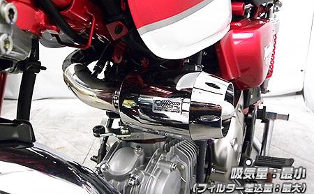 クリーナーにはパワーフィルターが装備されています。従来はパワーフィルターにあわせて、インジェクションコントローラーなどでのセッティングを行わなくてはいけませんでしたが、この商品は必要吸気量にあわせて一定の範囲内で無段階に調整でき、還元パイプ対応ということもあり簡単にセッティング出しやすく、パワーアップが計れます。